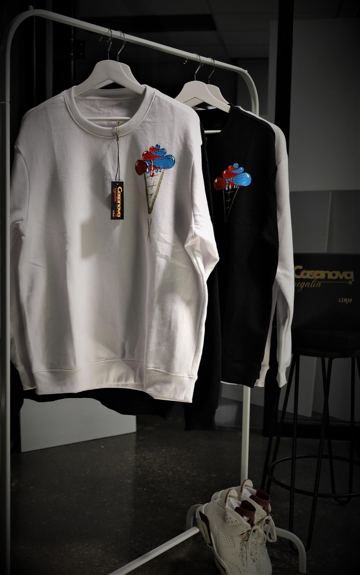 ; a highlight of the Summer 2021 release that featured the Gelato CDXVI icon directly painted onto the cotton blend fleece material. The garment also featured a hand sewn tag on the exterior side of the back neck seam.