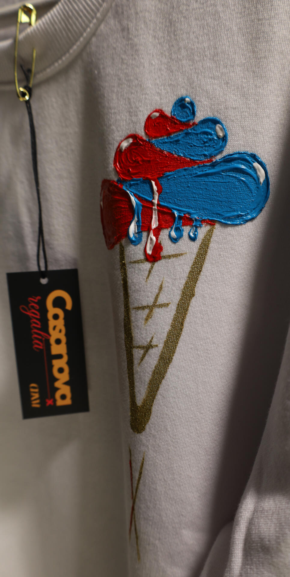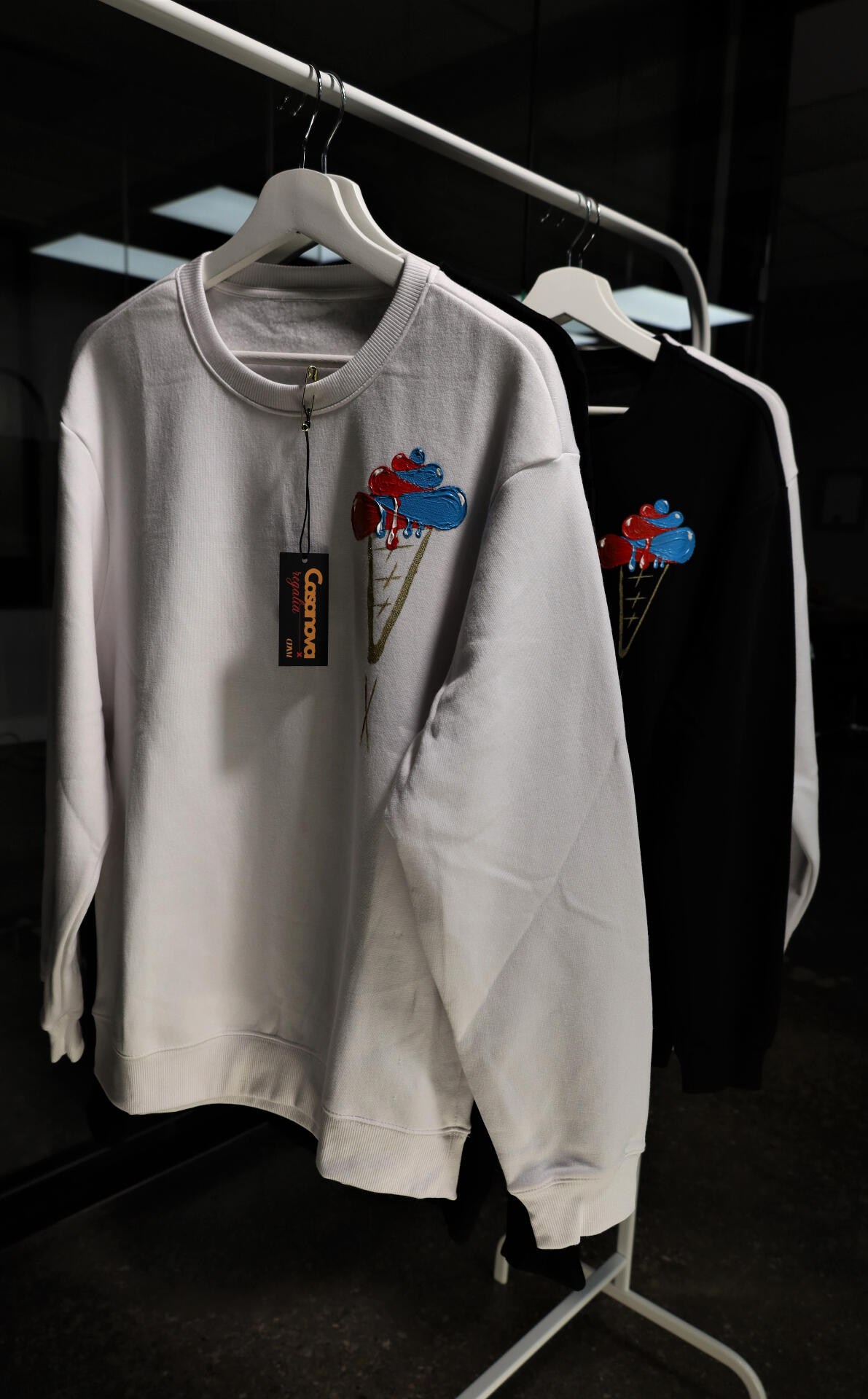 ; a highlight of the Summer 2021 release that featured the Gelato CDXVI icon directly painted onto the cotton blend fleece material. The garment also featured a hand sewn tag on the exterior side of the back neck seam.